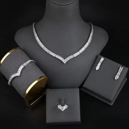 Outlet 2024 Fashion Cubic Zirconia 4 Piece Jewelry Set for Women Dubai Bridal Wedding Jewelry Sets