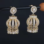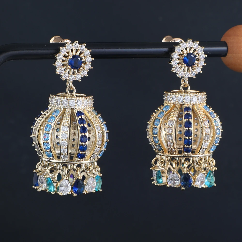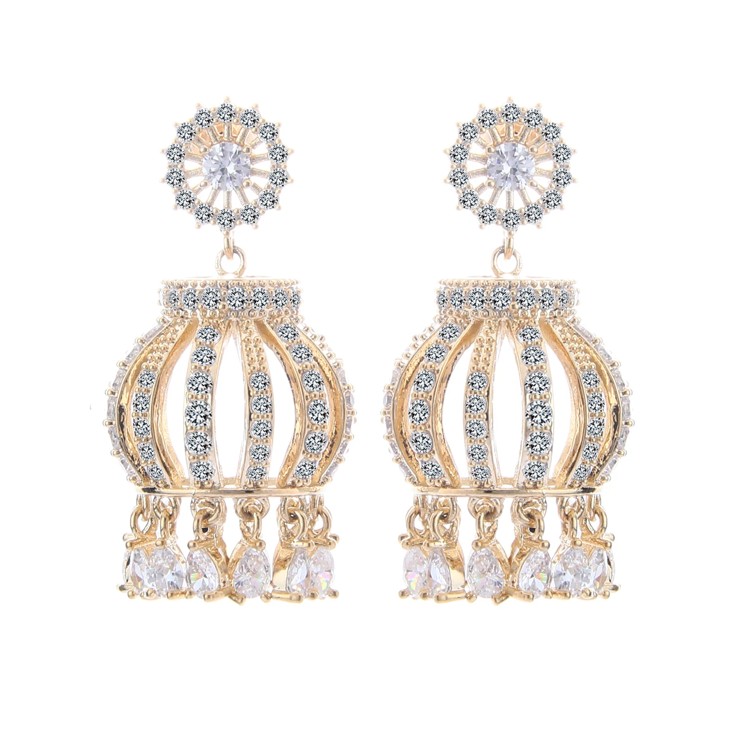 Home Fine Jewelry Fashion Designer Gold Plated Jhumka Earrings Indian Traditional Micro insert Zirconia 925 Silver Chandelier Earrings Women