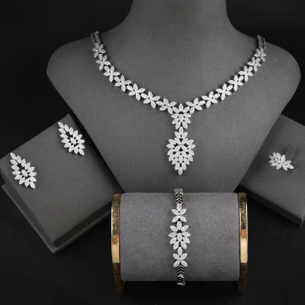 Luxury Shining AAA Cubic Zirconia Platinum Plated Necklace Set Saudi Arabia Jewelry Women Party Wedding Bridal Jewelry Set