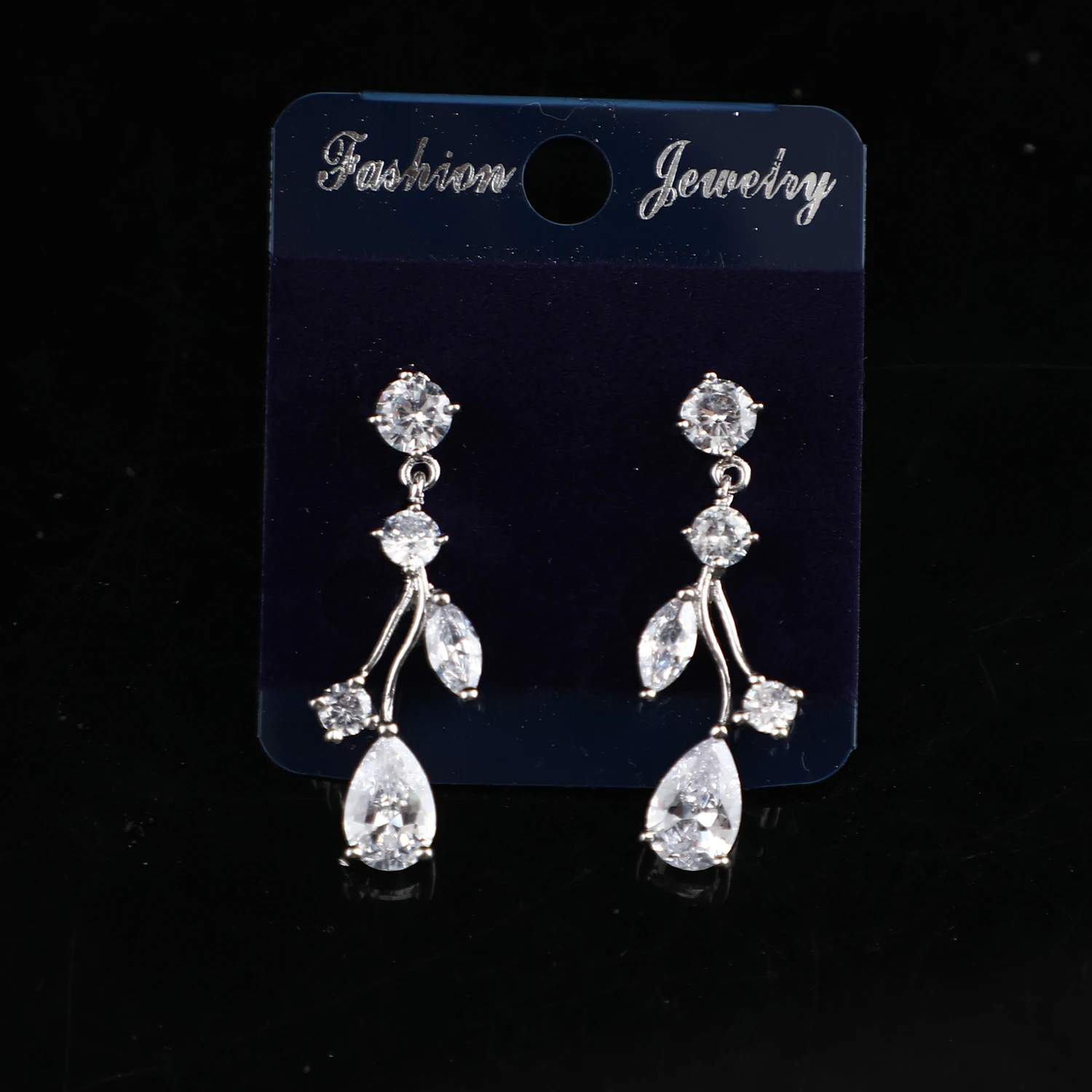 Home Fashion Jewelry Fashion Earrings Women Trend 2024 Platinum Plating Silvery Zircon Drop Earrings Charm