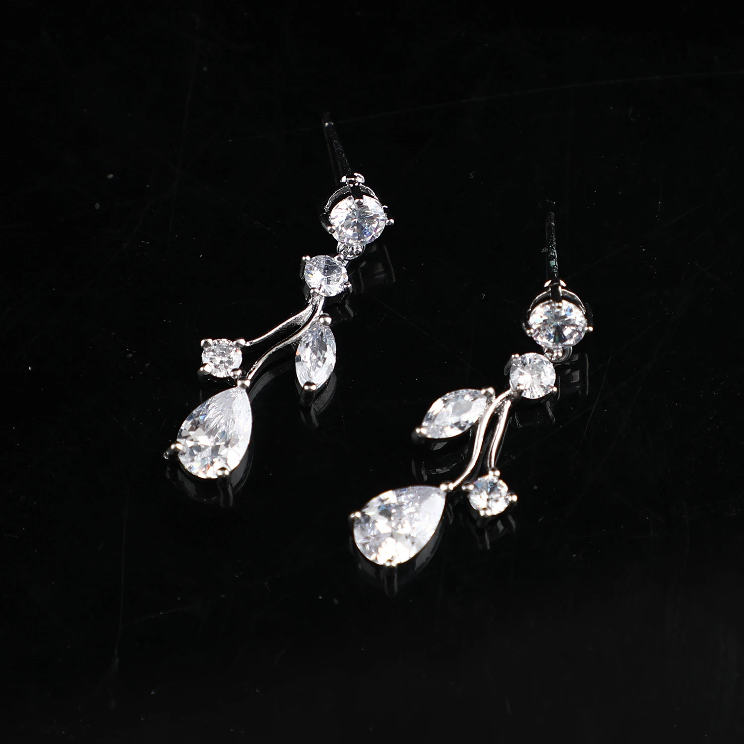 Fashion Earrings Women Trend 2024 Platinum Plating Silvery Zircon Drop Earrings Charm