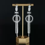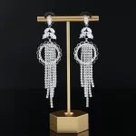 Fashion Elegant Socialite Style Chandelier Earrings CZ Zircon Long Dangler Bridal Wedding Prom Jewelry Tassel Earrings