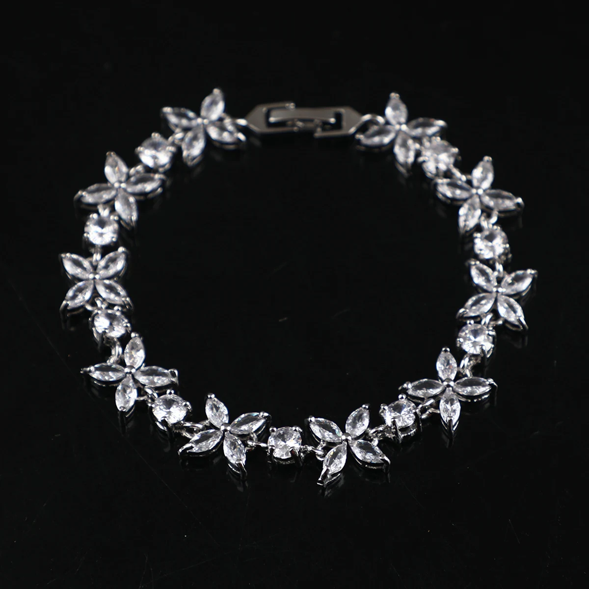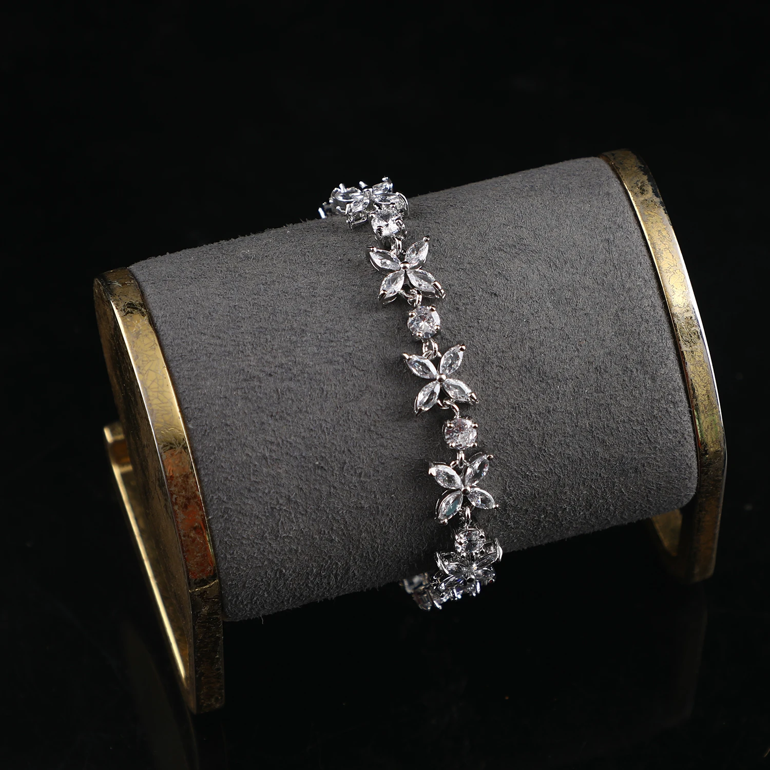Fashion Jewelry Bracelets CZ Flowers Charm Bracelet For Women Girlfriend Gift Cubic Zirconia Tennis Bracelet