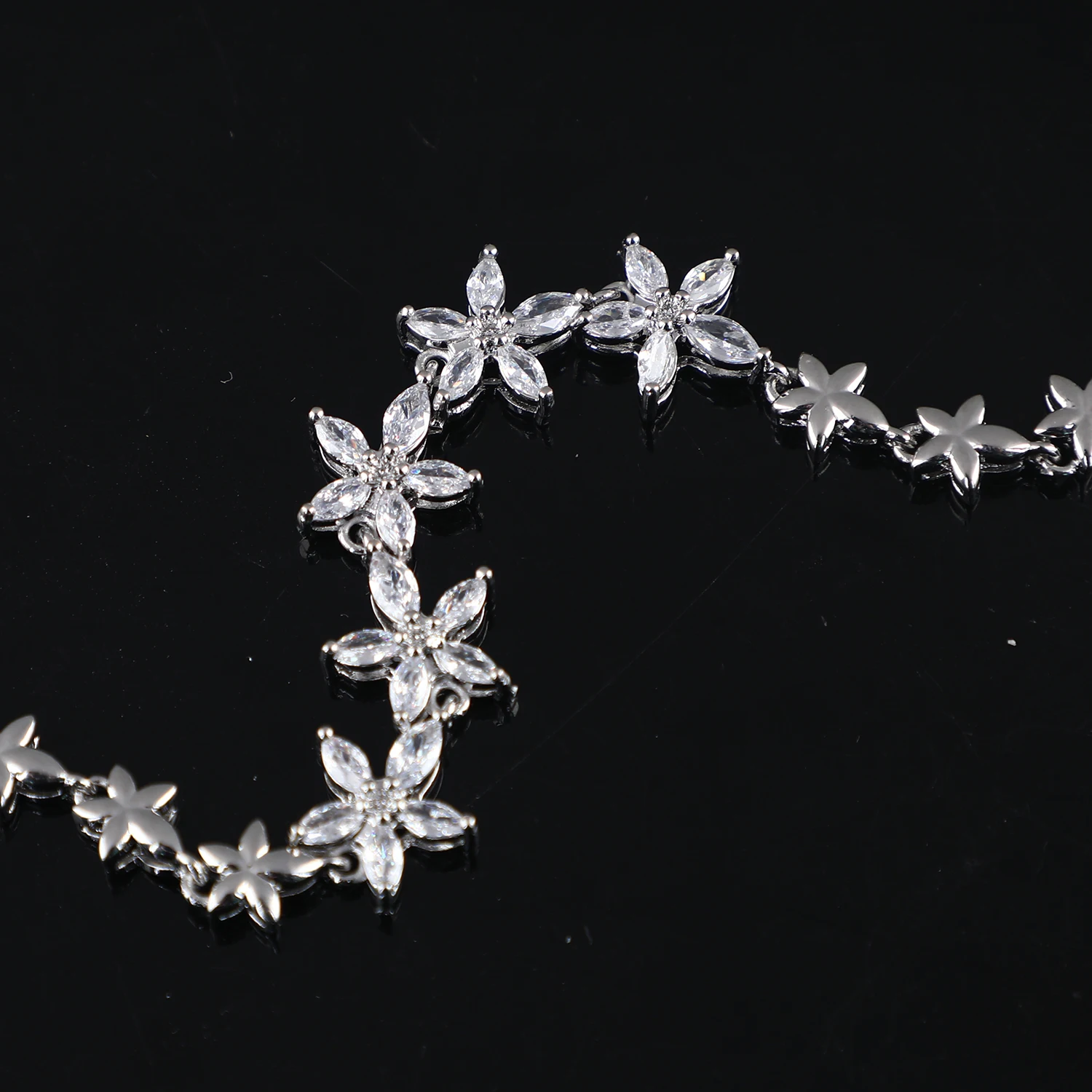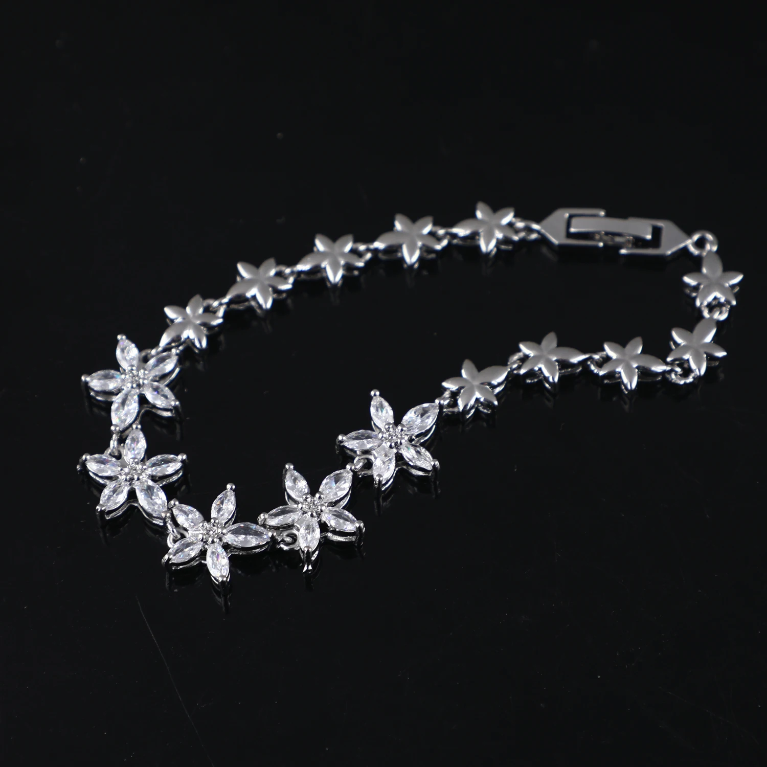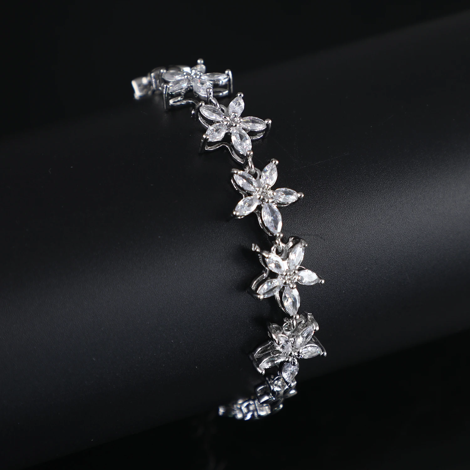 Fashion Jewelry Cubic Zirconia Flowers Tennis Bracelet Women Chain Charm Bracelet