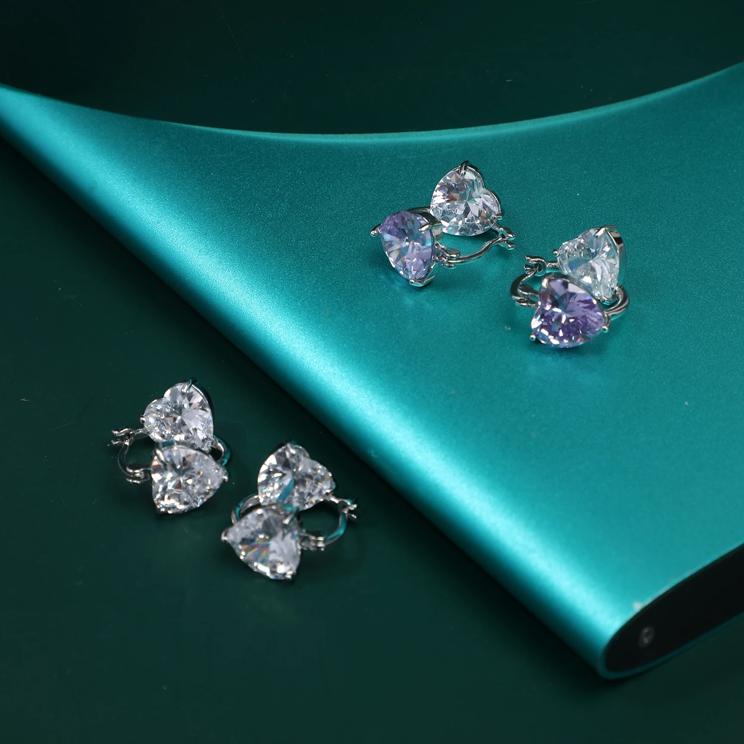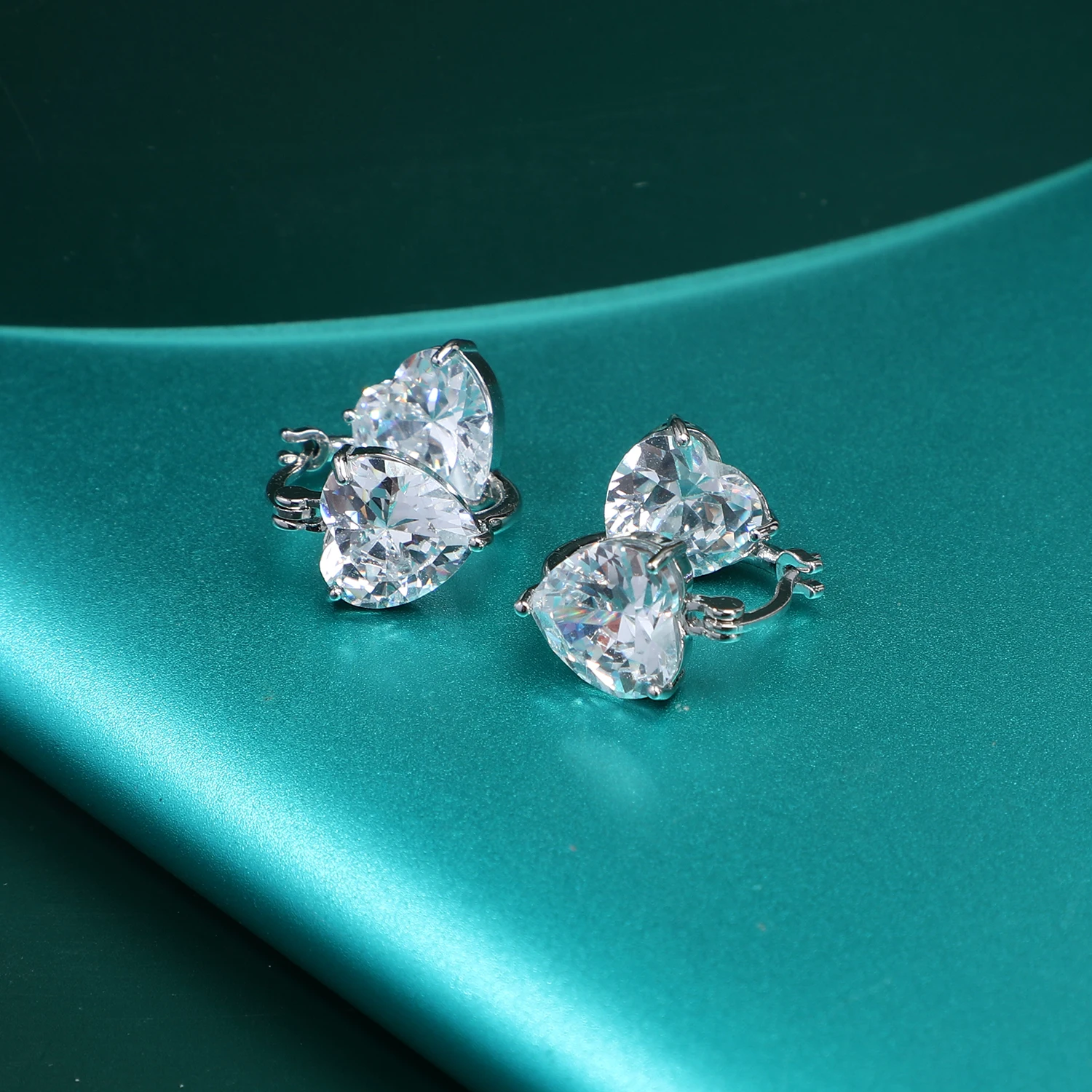 Fashion Jewelry Zirconia Charm Double Heart Earrings 2024 Huggie Statement Earrings Women