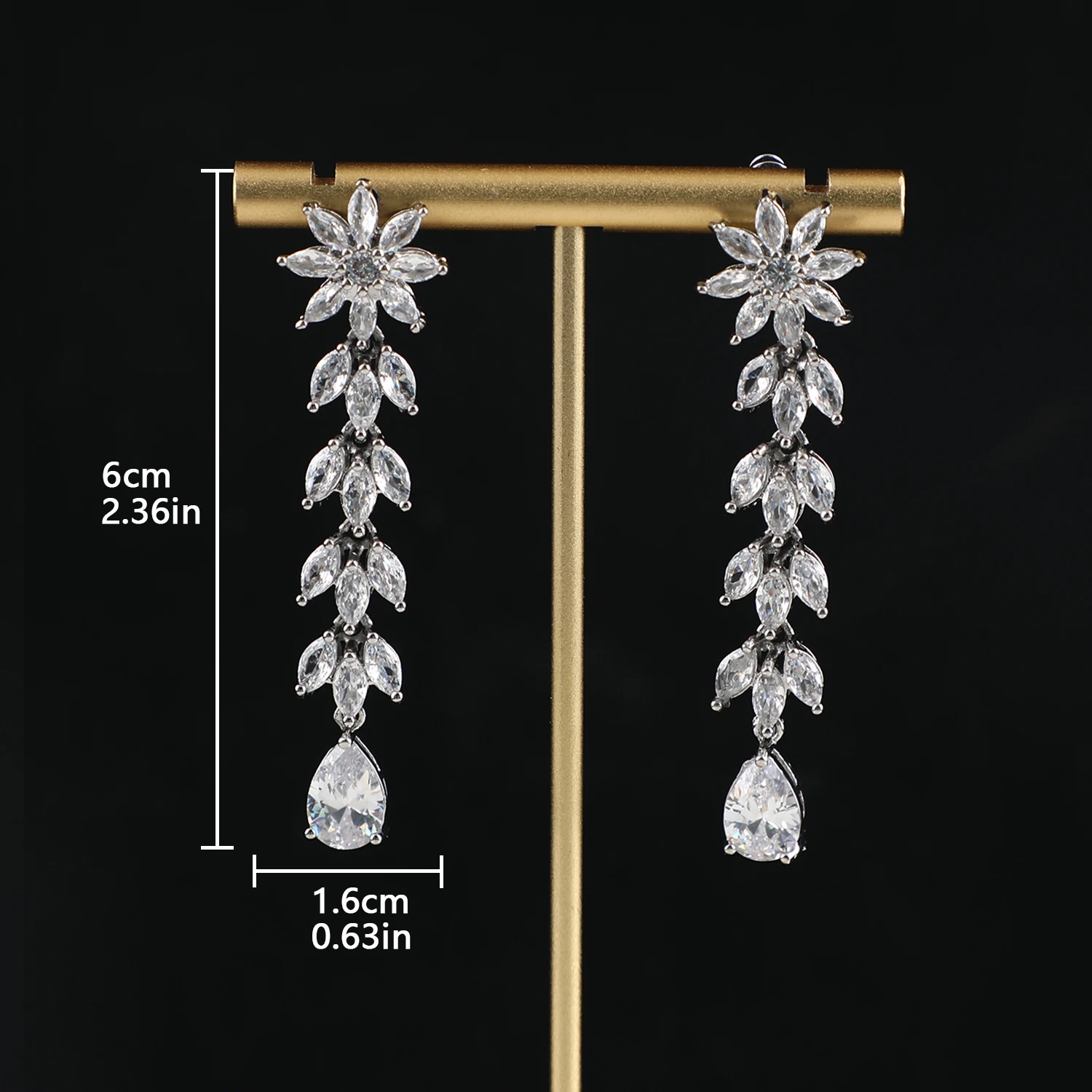 Fashion Long Pendant Dangle Earrings For Women Tarnish Free Jewelry CZ Zircon Bridal Earrings