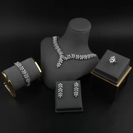 Platinum Plated Bridal Jewelry Set Zircon Jewellery Set Fashion Women Necklace Earring Bracelet Ring Set Jewelry Direct