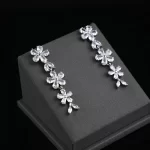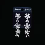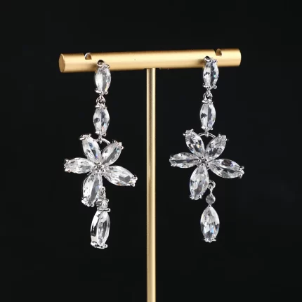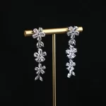 Home Fashion Jewelry Fashion Long Pendant Earring Diamante Zircon Flower Platinum Plating Fine Jewelry Bridal Earrings
