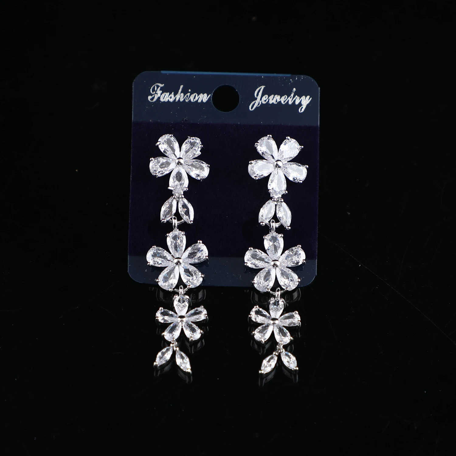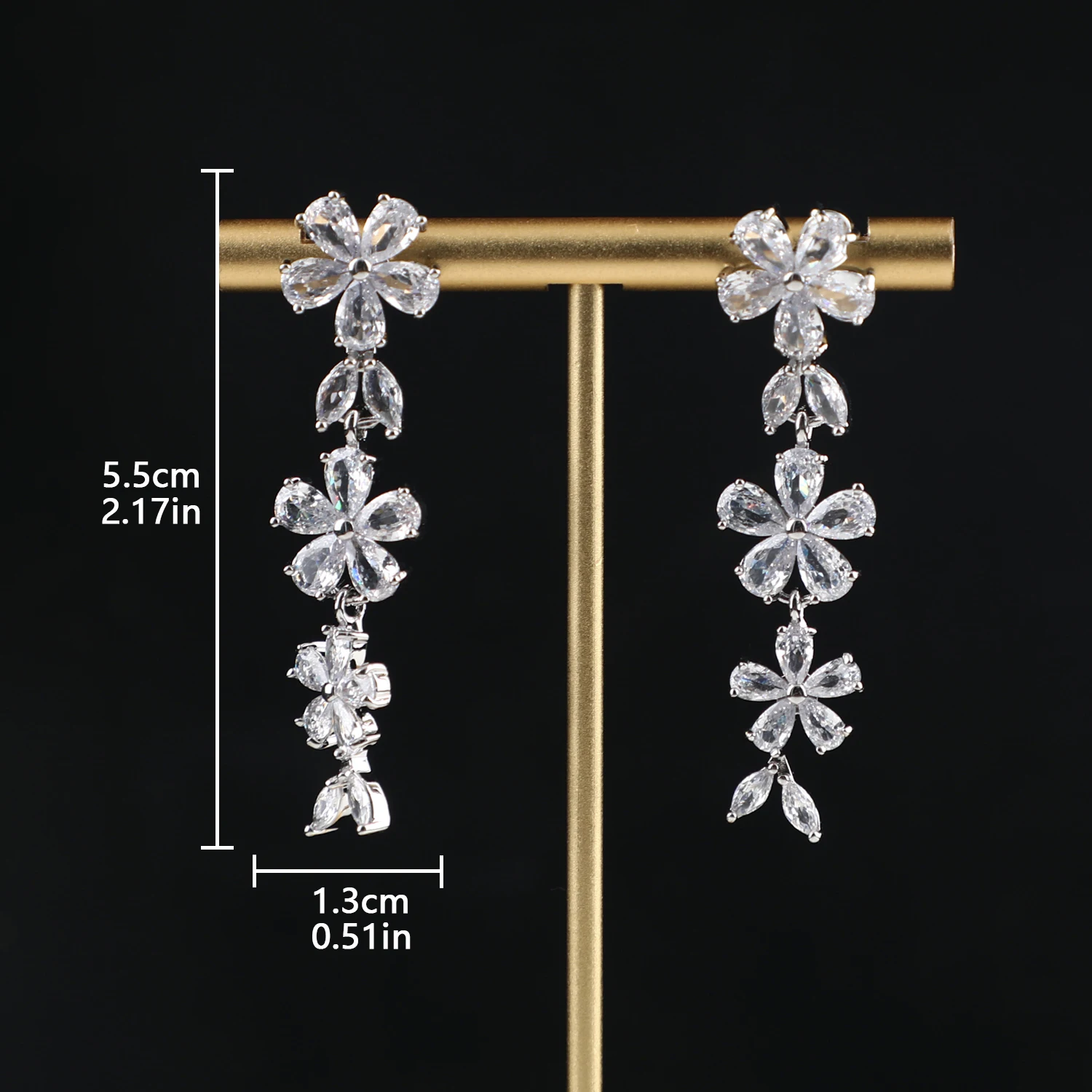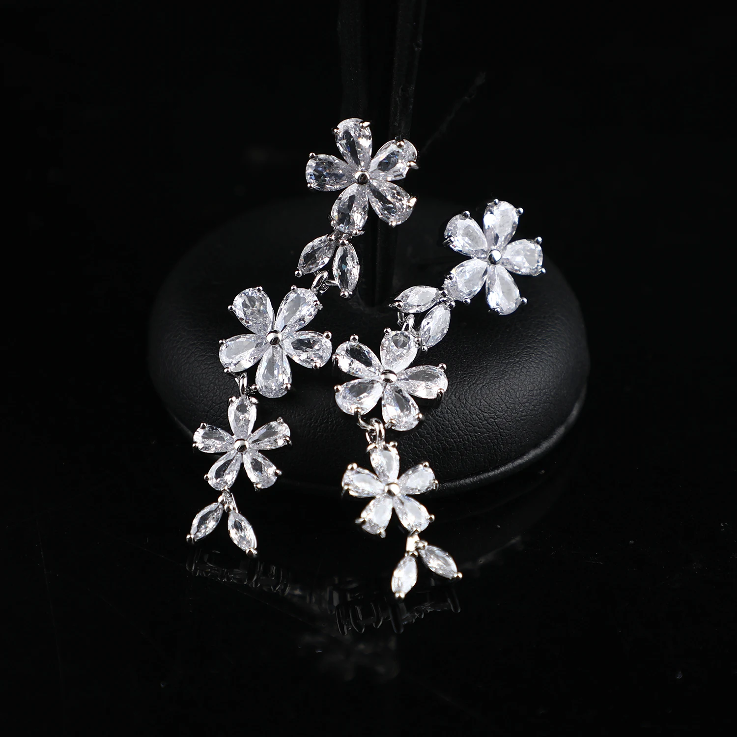 Fashion Long Pendant Earring Diamante Zircon Flower Platinum Plating Fine Jewelry Bridal Earrings