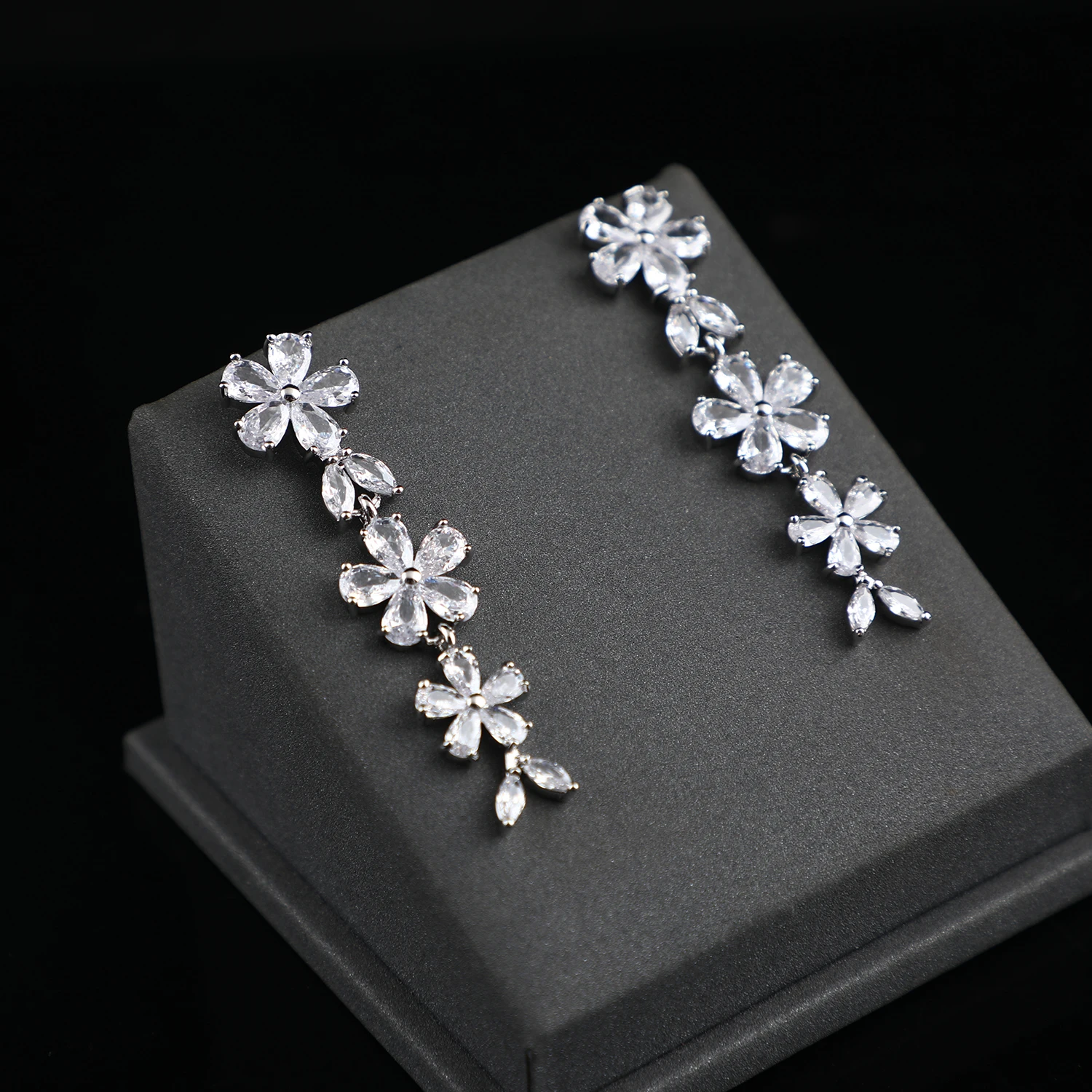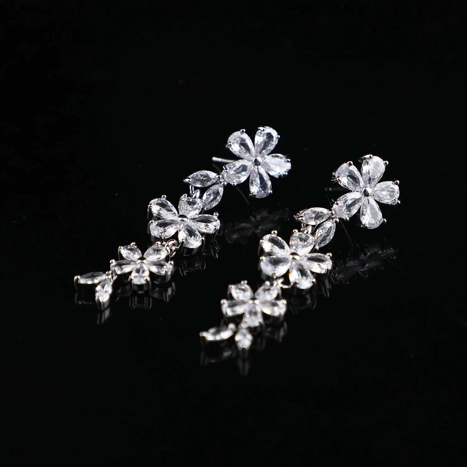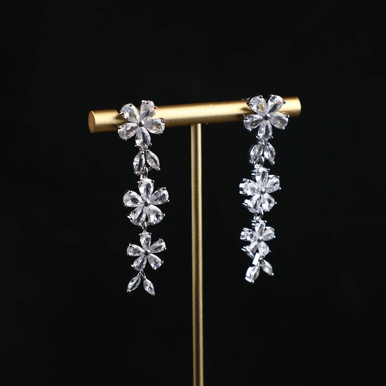Fashion Long Pendant Earring Diamante Zircon Flower Platinum Plating Fine Jewelry Bridal Earrings