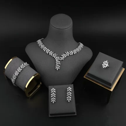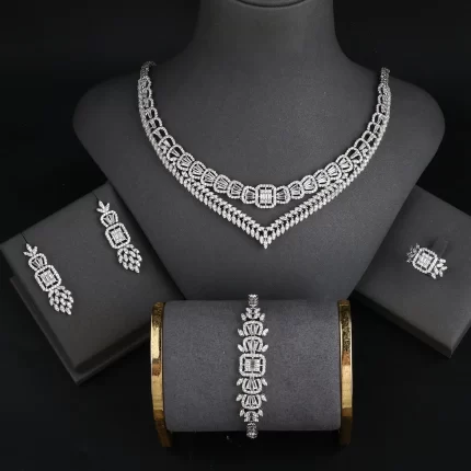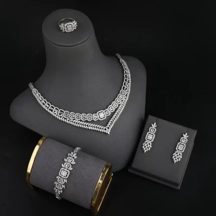 Luxury Bling Full Zircon 4-piece Necklace Sets Dubai Jewellery High Quality Tarnish Free Wedding Bridal Jewelry Sets
