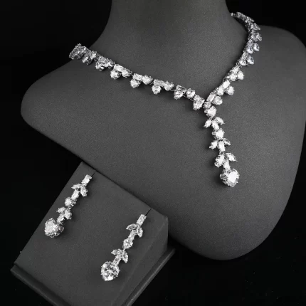 Luxury High Quality Platinum Plated Jewelry Women Full Cubic Zirconia Necklace Earring Sets Bridal Wedding Jewelry Sets