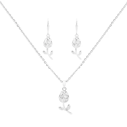 Platinum /Gold Plated Jewelry Set For Women 2024 Zircon Rose Flower Pendant Necklaces And Earring Sets Dainty Fashion Jewellery