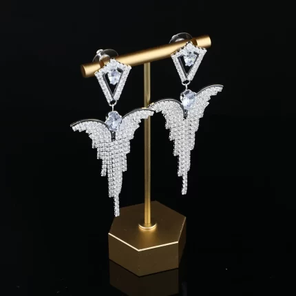 Fashion Luxury Designer Earrings Women Elegant Ladies Bridal Jewelry Bling Silver Color Cubic Zirconia Tassel Earrings $26.58