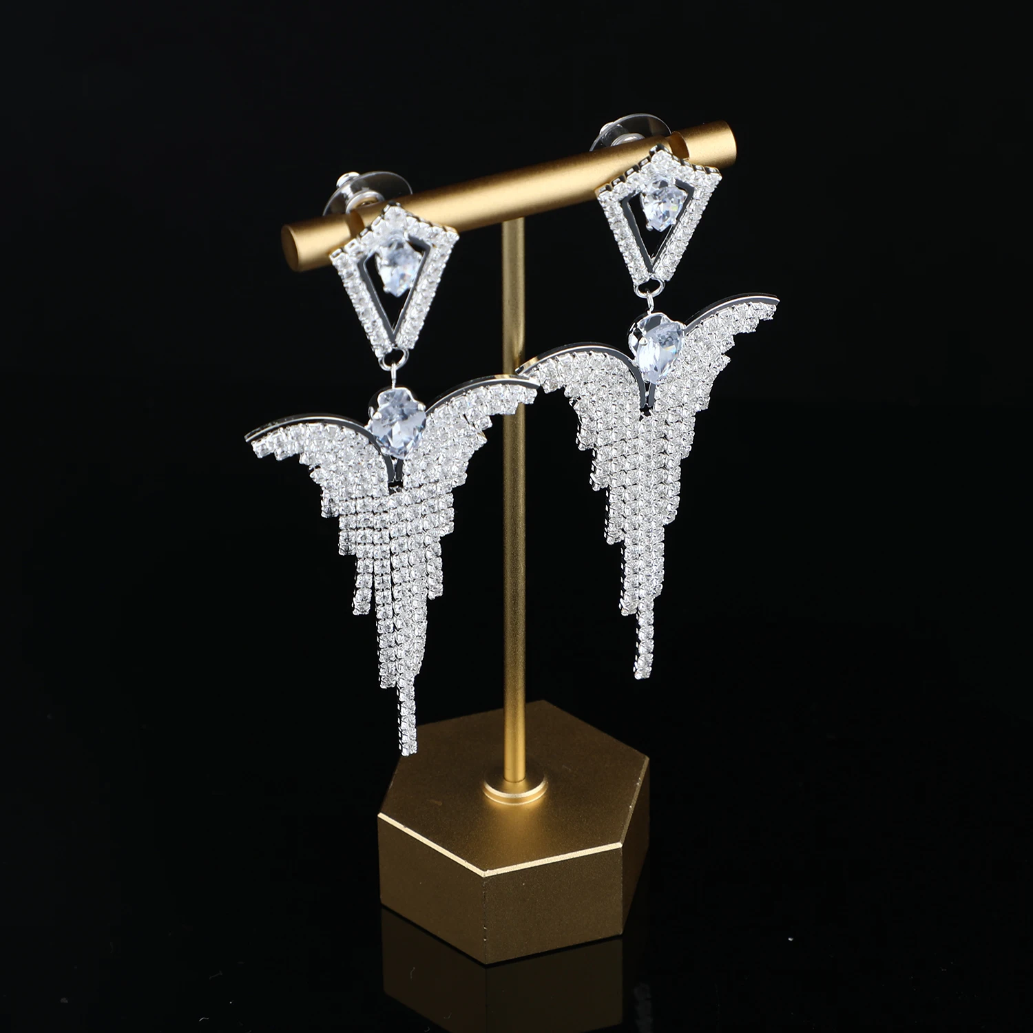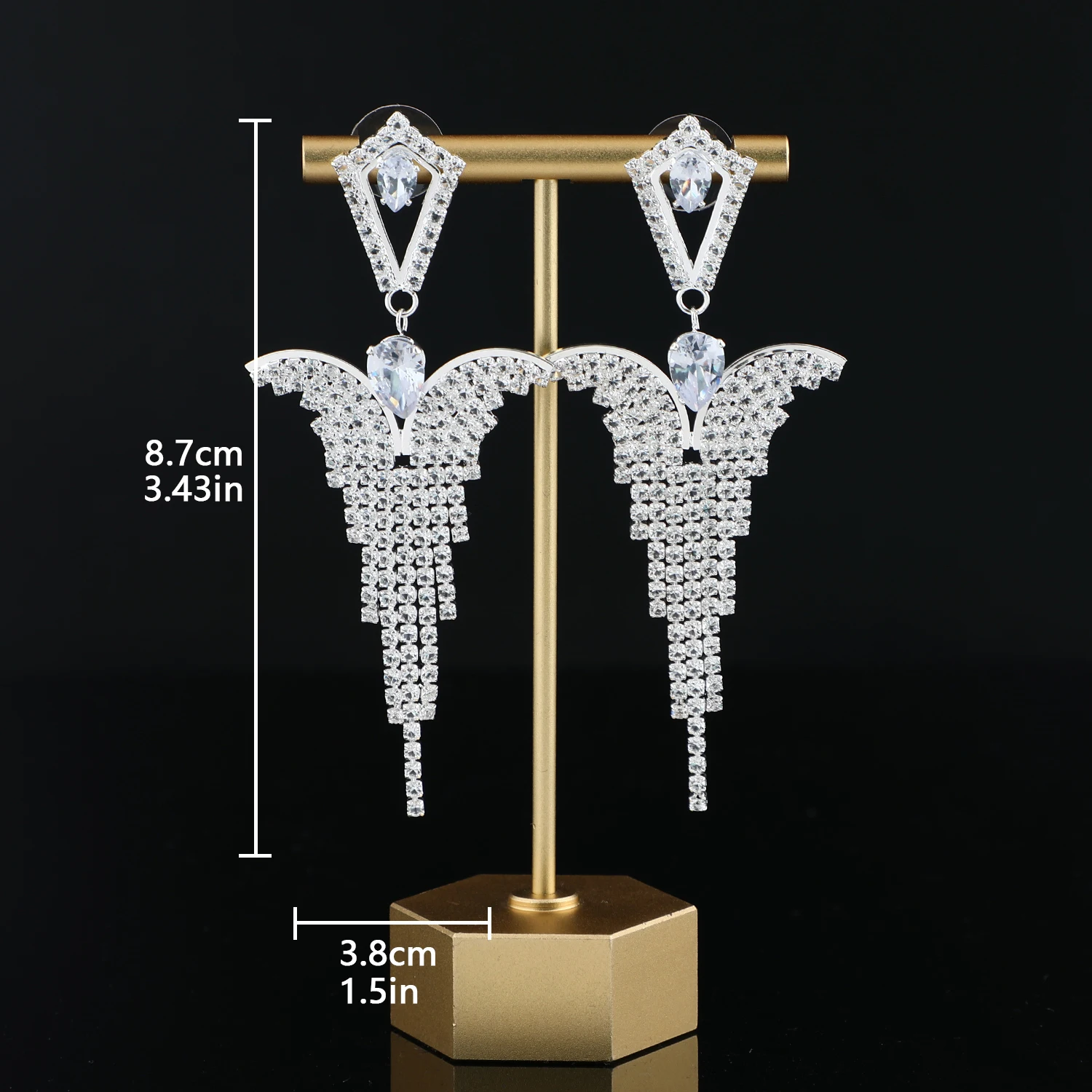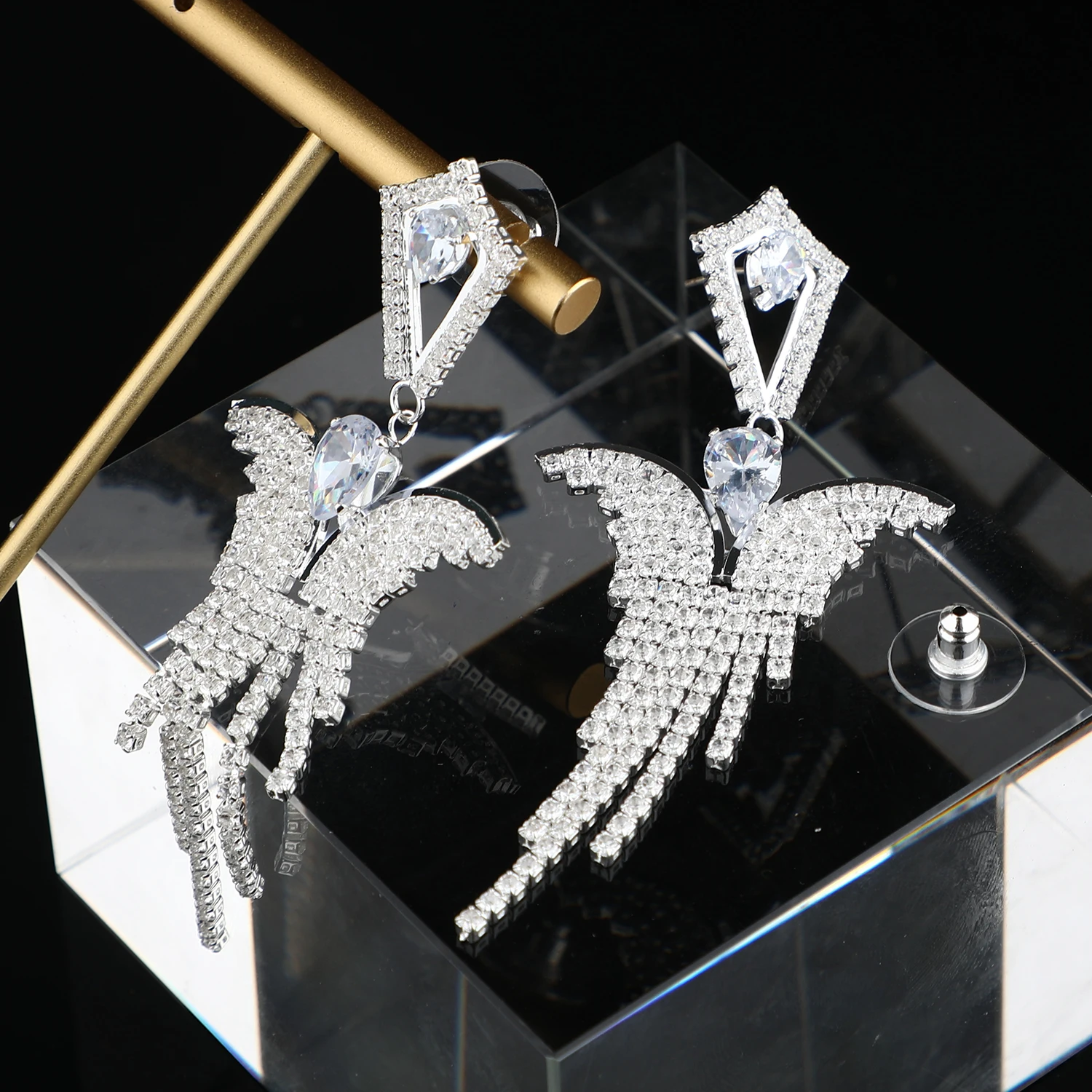 Fashion Luxury Designer Earrings Women Elegant Ladies Bridal Jewelry Bling Silver Color Cubic Zirconia Tassel Earrings