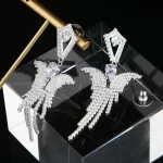 Fashion Long Pendant Earring Diamante Zircon Flower Platinum Plating Fine Jewelry Bridal Earrings $26.42