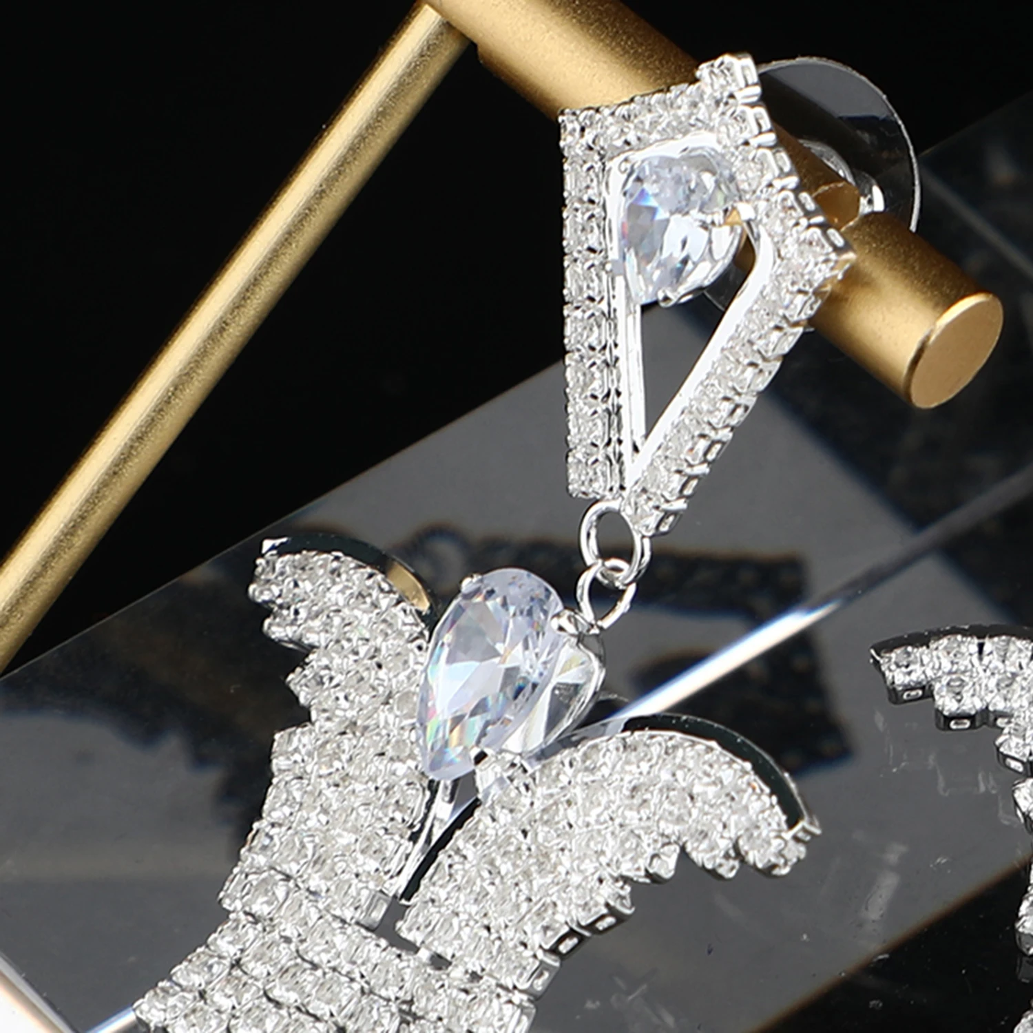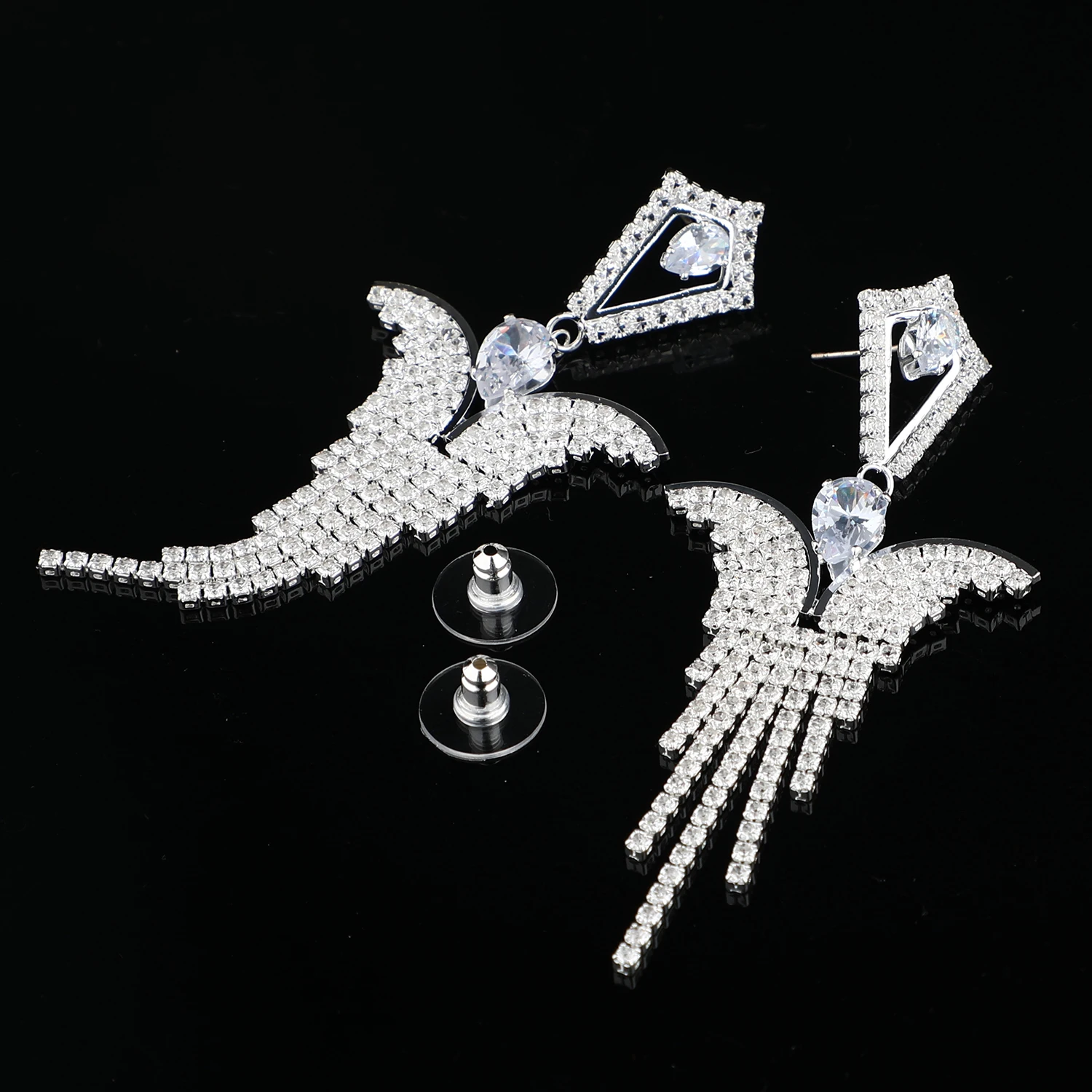 Home Fashion Jewelry Fashion Luxury Designer Earrings Women Elegant Ladies Bridal Jewelry Bling Silver Color Cubic Zirconia Tassel Earrings