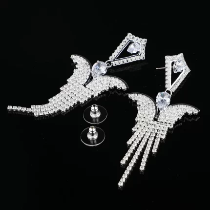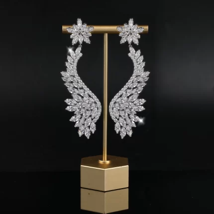 Fashion Luxury Shining Clear Cubic Zircon Long Pendant Earring Jewelry Bridal Chandelier Earrings